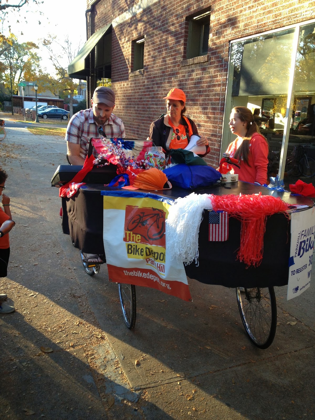 And after naptime, we took advantage of the "HalloWheels" neighborhood bike ride! We first met up with buddies at the Bike Depot before heading to the Library...