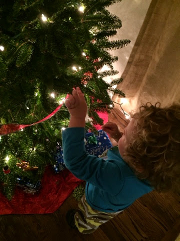 Benjamin put all the ornaments we gave him to hang up in the SAME spot on the tree. It got a little bogged down...